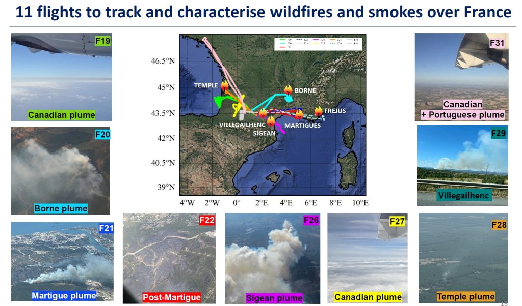 The operational website has been active since early June, analyzing conditions and ready to activate ATR flights from July 14. The operational team brings together weather forecasters, Météo-France forecasters specializing in fire risk working in connection with the fire-fighting resources of the French Sécurité Civile, ATC, SAFIRE and scientists involved in the campaign. All information are available on the operational website developed by AERIS (weather forecast, fire risk forecasts, models, satellite image, etc.) to decide aircraft GO/NOGO.